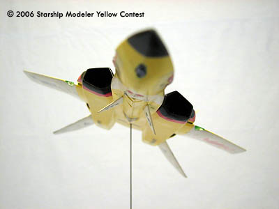 I turned the back part of the fuselage upsidedown , which brought the intakes way up. This took surprisingly little effort; only a little cutting was required on the top side and 2 short pieces of plastic glued in on the bottom to fill in the overlap, then puttied and sanded to shape.