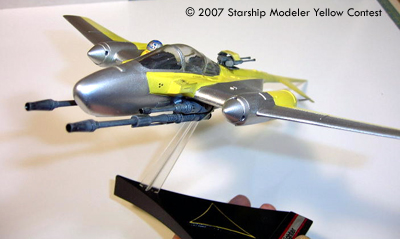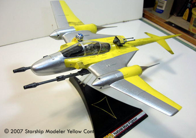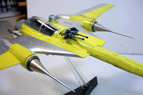 At the time of the Clone Wars, only a single prototype N-109 heavy fighter had been finished, requiring a rushed final assembly plan, which slightly altered the production version of the fighter. Instead of having the large turbo lasers and rear-mounted anti-fighter turret blend into the ship's hull, they ended-up being hastily added-on, which gives these fighters an oddly menacing and slightly out-of-place appearance.