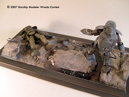The Axis fighter has a newer, up-gunned armored suit, while the Allied