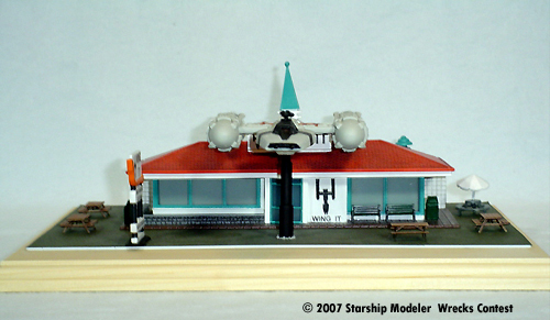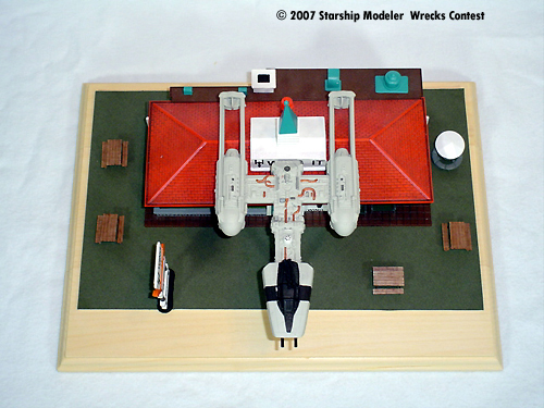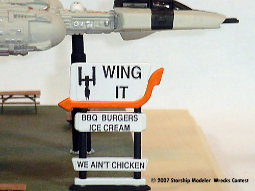 The Y-Wing support post is telescoping plastic scratch building tube with railroad ballast