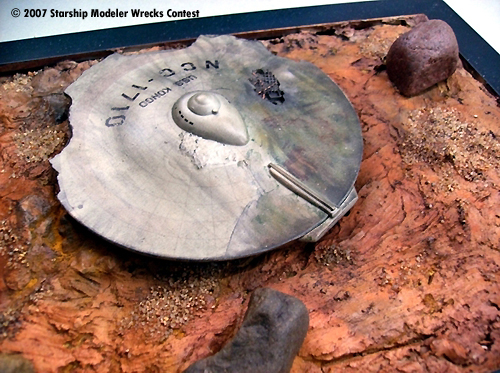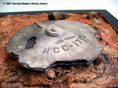 Inspired by the teaser from the fan film Starship Exeter: The Trasaurrian Intersection, the reveal of the crashed saucer section of the USS Kongo on the surface was a memorable scene. The Exeter is dispatched to the Starbase on Corinth 4, only to find the base destroyed and the crashed hull of the Kongo . If you haven't seen the film yet, I won't spoil it. You can view it here.
