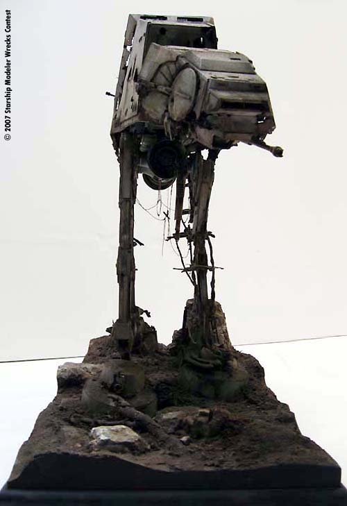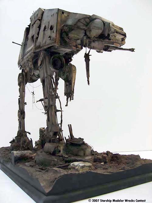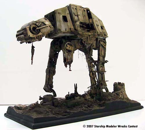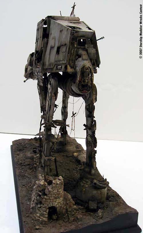 With a few extra modifications and heavy weathering I finally put together a battle damaged and abandoned AT-AT. To give more depth to the scene I added another layer of time by building a primitive refuge that utilized the already abandoned AT-AT. To make things even more layered I made the newer refuge abandoned as well.