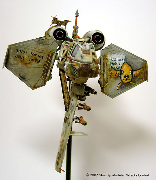 The last of its type will now be transferred to the “Museum of Defence and Space”. During the recent years the newer space fighter mark “Thunderwave” has slowly taken over the place of heavily aged “Crooked Fishes”.