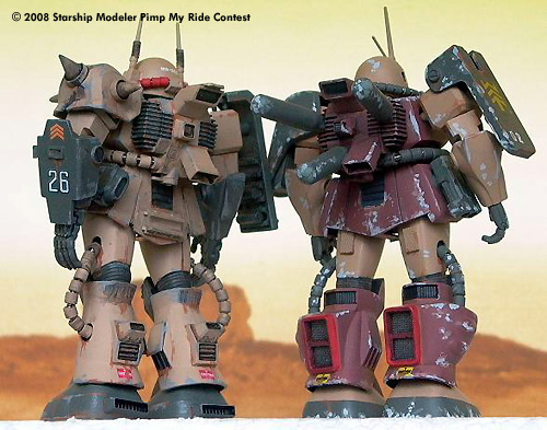 custom modes and no MS was same as the other. "Pimp my Mecha!" was the call of the Zeon MS-Pilots, when they turned back to the bases after a mission and most of the mechanic teams where really overworked. So many Zakus were upgraded and pimped up with a lot of special equipments, powerful weapons and stronger armor.