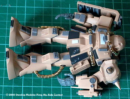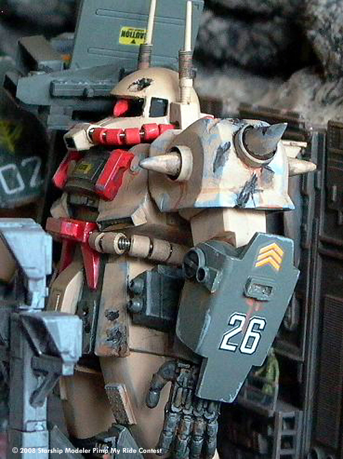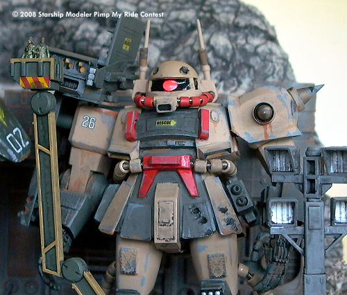 Desert Zaku MK-2 Custom Special: External Propellant Tanks, Super-Cooler for Fusion Hover-System, Armor Pipes for Booster, Dust-Filter System, Cluster-Grenade Launcherx16, Anti-Air Missile x 2, 120mm Vulcan Machine