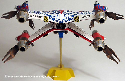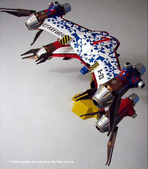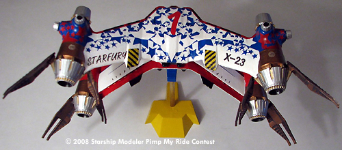 Knowing that I wanted it to be something different I started thinking of a aerobatic livery version (think Blue Angles..). While researching this and other Starfury work I came across the Pimp My Ride competition and got inspired.