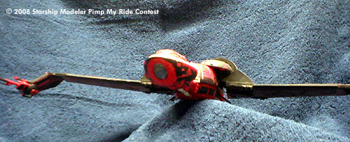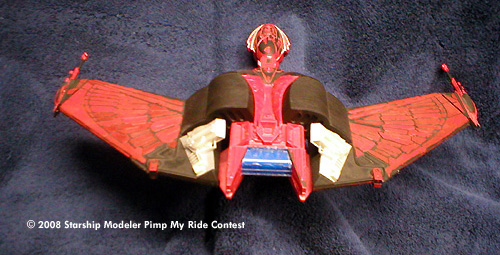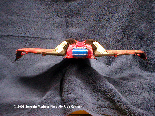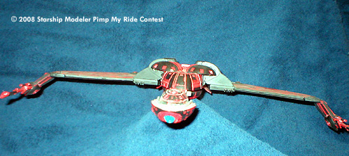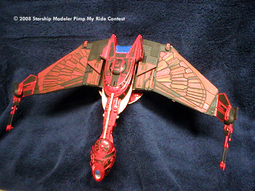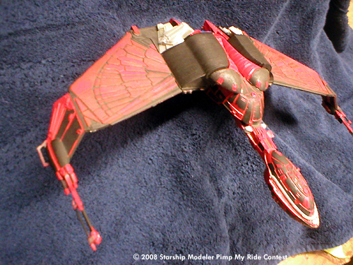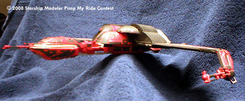 The ship itself is made from a stock kit the difference being the paint job. I thought that the red and black where cool and would fit the Klingon look.
