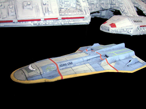 My long-time modelling-pal helped me with the nameplate for this project. Just want to say “Thank you” to M.S.! I have two nameplates: one says “Battlestar Galactica - Leader of the Rag Tag Fleet”. The other one says “Battlestar Galactica - Mighty Protector of the Rag Tag Fleet”. I have not decided yet which one I will use.
