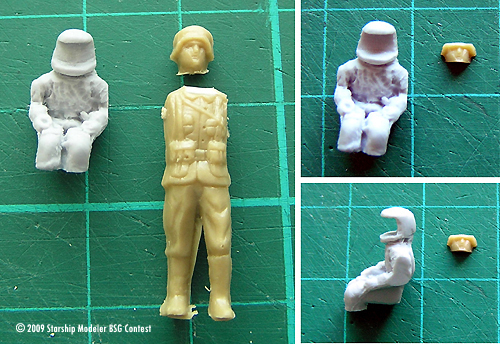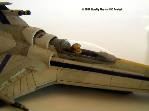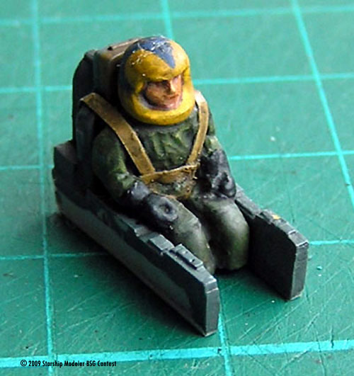 The pilot on the other hand is ugly, so I gave him a face (as I imagine a cockpit with atmosphere support) and a seatbelt to hide some of the badly sculpted overall he is wearing. The rest of his flaws are hidden by the canopy which is nice and clear but due to its curve and the resulting reflections makes it difficult to make out too many details of the inside.