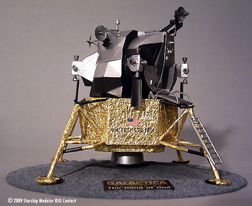 I built it mostly right out of Box, the only thing I altered is the use of the crumpled golden foil around the descent stage and the landing legs, as well as silver foil around the maneuvering thrusters (which was not part of the kit - I took it from chocolate wrapping). It was time consuming to wrap it around the latticework, but the result is worth every minute! It was later partially overpainted with black to simulate the “rubber”-protection surface in some specific areas of the lander.
