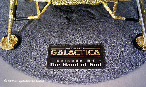 Finally I made a small badge for the display, showing the classic BSG logo and the number and name of the final episode. As mentioned above the picture of the Eagle was the very, very, very last scene of the old series, so the complete display is nothing less than the “Farewell to Battlestar Galactica”!