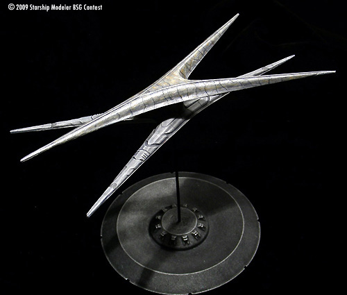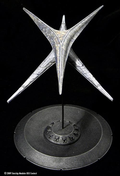 This is a repaint of a Replicas Unlimited’s Cylon Basestar I built a few years ago. It is a first run kit I bought through Federation Models. Of course, it represents the re-imagined Cylon Basestar from the Sci-Fi Channel series where onboard their new Basestar the new Cylons listen to piano music, exercise democracy, and the data stream really is a trickling stream. Personally I love the design and how it points to the original Basestar without copying it.