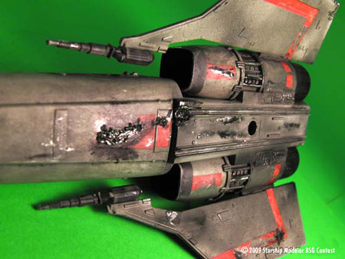 As for construction, I started on Viper 1 one night, with Viper 2 following the next night. Before what would have been final assembly, I stuck a set of three magnets into each model, one for each engine. These magnets hold the nose and forward engine vents onto the back half of the engines. This way, if I deceide to add lights later, I have full access to the body. See this: 4 minute YouTube video for more details