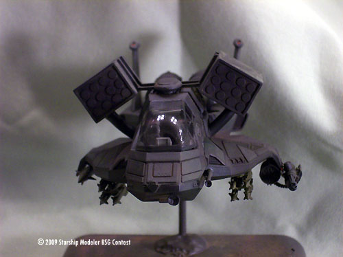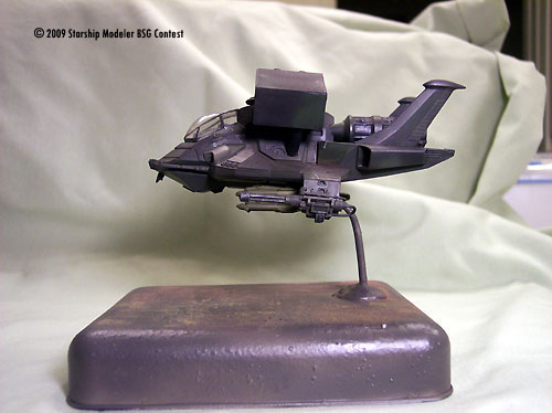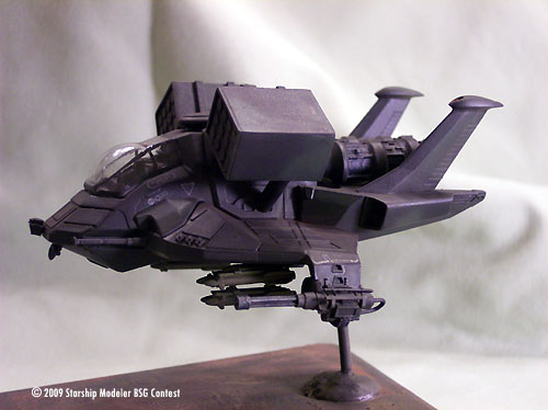 The kit used is the Black Suns 1/72 Raptor (great kit by the way!) built mostly out of the box with added scratch built features. These include the two multiple missile launchers, the mini gun and ammo drum. The smaller missiles come from a 1/72 apache kit and the larger missile is from the 1/72 weapons set. There are no pilots right now as I have seemed to have lost them somewhere. The interior was painted and weather even though it is barely visible through the cockpit. Colors used for the camo are flat black as a primer, light coat of helo drab and then a motlling of marine green. It really gives the Raptor that menacing look.