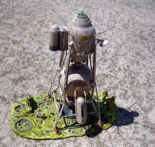 The base is from Revell's LEM kit. I added some 60-ish rock formations just to give it some personality.