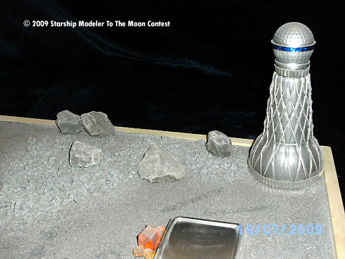 Liberal usage of white and silver paint was used for the main elements of the scene, to maintain the clean utilitarian look of the original Space 1999.