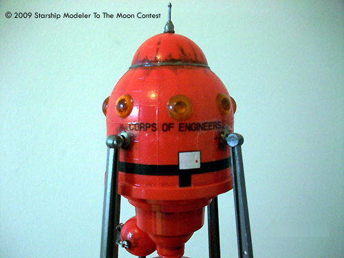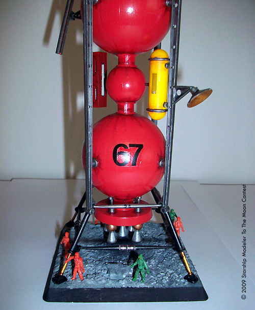 The year 2060 united Kingdom's Corps of Engineering has just landed on their chosen site. The mission: to get the foundations ready for the next wave of space ships bringing the accommodation spheres. The chosen subject was the Glencoe Lunar Lander. The construction was as per instructions - the only addition was the antenna at the top of the command module. Humbrol gloss red was used for the main ship with Citadel colours for the rest of the vessel. I have added some figures to the base which has been landscaped to add realism and give indication of the size of the space ship.