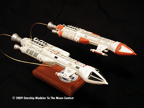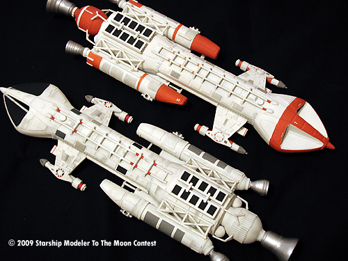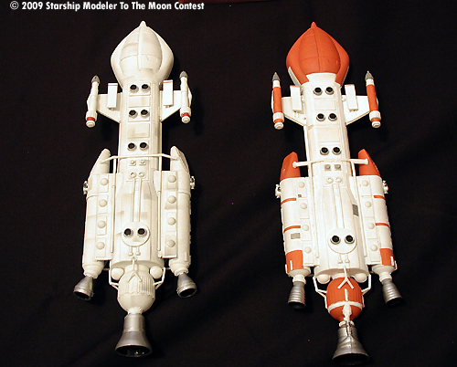 The Hawk studio model was originally created with the same basic white coloring as the Eagle Transporters used on Moonbase Alpha. However, since the two craft would be filmed dogfighting one another, the decision was made to add orange trim to the Hawks to make them easier to distinguish from the Eagles. I think it looks better in white, so I just had to have two of them. I searched my spare parts box and was able to find some parts. On eBay I was able to get all of an original Airfix kit. I did not have quite enough parts for two complete models, so I had to be creative with matching the missing parts. I won't tell you which parts were kit-bashed or built from scratch, but if you look closely, you can probably tell.