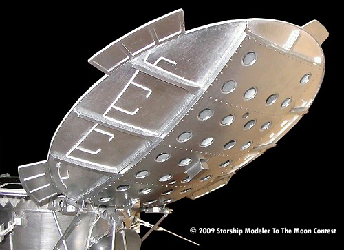 This time Internet provided me with tons of new information. I was able to make very detailled blueprints and built an accurate model of Lunokhod 2. I statted with cardboard but rapidly changed to styrene. The only unknown was the presence of thermal blankets applied onto the spacecraft. This was probably the case but no photographs were ever released of Lunokhod 2 as it would appear on the Moon. I then decided to built it as it appeared during the final construction phase i.e. bright aluminium instead of white for the first model. The first pictures of Lunokhod 2 with its thermal blankets on were shown just a couple of years after I completed my model in a documentary for which I helped writing the commentary: Tank on the Moon. It was then too late to redo the model.