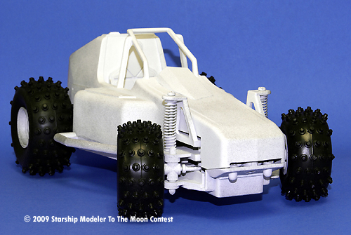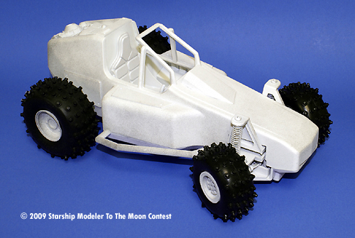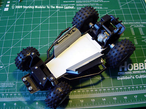 During my years of pack ratting, I'd accumulated quiet a collection of odd objects, from pieces of an old Galactica Raider to discarded RC dune buggies. When the new contest theme was revealed, I knew I wanted to tackled something using something out of the old pile of greebles. I finally settled on an old RC car that I had acquired from an old friend. I would convert it into a futuristic Lunar Bug (I didn't want to call it Dune Buggy as not to confuse it with the classic Space 1999 vehicle).