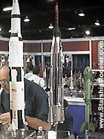 DML/Shanghai Dragon - Nothing new in their space line-up was displayed or discussed. The only kits we're aware of are the re-issued Ariane 5 (also issued by Revell/Germany) that just came out. Heller was touting a new 1/125 scale Ariane 5. Seems I've seen it before .... but maybe I'm thinking of the recent Revell or DML releases. Airfix - There was a large visible V-1 at the Airfix booth. We weren't able to find anything aout about it (or any other space/sci-fi) though. |