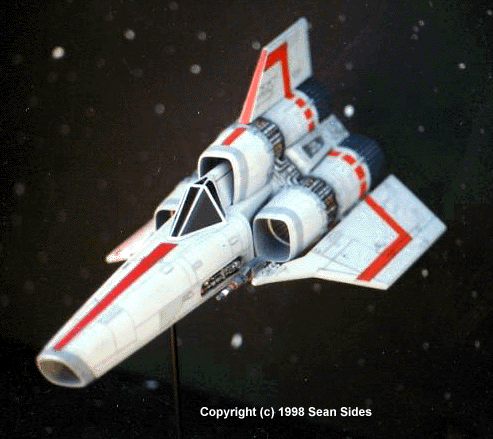 This kit is mostly out of the box from Monogram. I added a few styrene "panels" on the wings and fuselage. No decals were used. All markings were airbrushed on. Paint color was a custom mix of Testors Enamels: Dark Ghost Gray, White and Silver. The orange markings are a mix of Orange Ochre and Red. The canopy was painted gloss black. I added some styrene to the back of the engines to make the diameters look thicker, like the production kit. The weathering was created by using chalk pastels as well as outlining the panels with the pastels. The background is part of the display stand. |