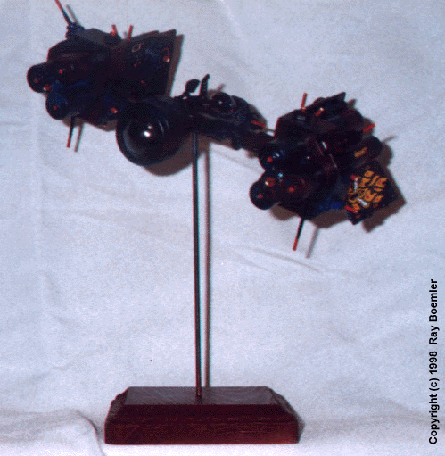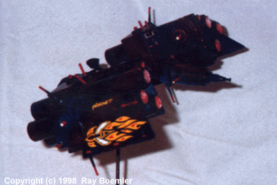 Ship Name: Hornet 8080 From 2107AD to 2115AD, the UPSC Stinger class was the utility craft for the corps. During the last three years the Stinger class, which was originally designed as a medium endurance scout ship, was converted into a fast attack fighter. This action was the turning point in the war with the Mar'kian. Macro rail drivers and energy refracting field generators were installed on all of the remaining Stinger class ships. This new rail weapon technology turned the tide during the Mar'kian uprising. All surviving Stinger class ships were granted to the UPSC pilots who served during the war. This fighter, the "Hornet", is registered to UPSC Major Jon Santini (ret). Major Santini was credited with thirty-eight successful missions and was awarded the Sol Star Cluster with honors. |