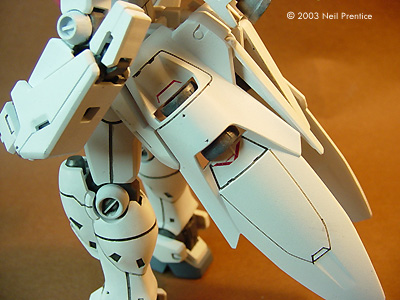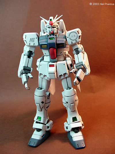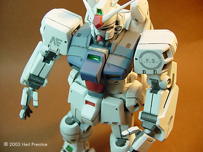Animation Scale Models 4U has developed a line of markings in 1/100 and 1/144 scale, some for particular kits and some for general use. Each sheet contains a wealth of insignia, wwarning stripes, logos and other markings with which to liven your Zeon, Federation, Titans, AEUG and other Gundams. The neat thing is that most of these markings are sufficiently "bizarre" enough you can use them on a variety of sci-fi projects and no one but a Gundam afficianado will know the difference! The decals are printed with an ALPS, which allows for white images and backgrounds. Images are consistently sharp and perfectly registered, with no gaps or bleeding between colors. Unlike many other ALPS decals available, there is no dithering (grainyness) evident in any of the images - they are perfectly solid. Like other ALPS decals, the entire sheet is covered with a clear film, which means you'll have to trim close to the images to minimize any excess on your model. Using The Decals The decals are commendably thin, but no thin as to be fragile and difficult to handle. I was able to slide them of the backing and maneuver around on the model with no tears or wrinkling. The covering seems to be a liquid decal film, instead of Dullcote as some other decal shops use. Any stray clear film disappeared when I applied Microscale's MicroSol solvent (a dullcote carrier tends to silver when I use it on those other decals), and there was no visible 'ridge' around any of the markings after they dried. I tried both MicroSol and Solvaset, a much stronger setting aid, with no damage to the decals. I was afraid the markings would be so thin that background colors would show through - especially with the white images. That does not seem to be the case - even over the transition between dark and light colors (a pale yellow and bright red, in my case). I had a couple small air bubbles trapped under one decal. When it had dried, I pricked a small hole over the bubble with the tip of my hobby knife, flattened the area with a q-tip (cotton bud) dampened in Microsol -- and voila: no bubble. Sometimes I can';t get mainstream silk-screened decals to behave that nicely. Conclusions These decals are definitely an enhancement to what normally comes with Gundam kits, enabling you to make something that looks more like a moidel and less like a toy. In many respects they are the best ALPS-printed decals I've used, and I have already ordered a variety of other markings (which will end up on other sci-fi models as I'm not much into Gundam at the moment). Highly recommended. |