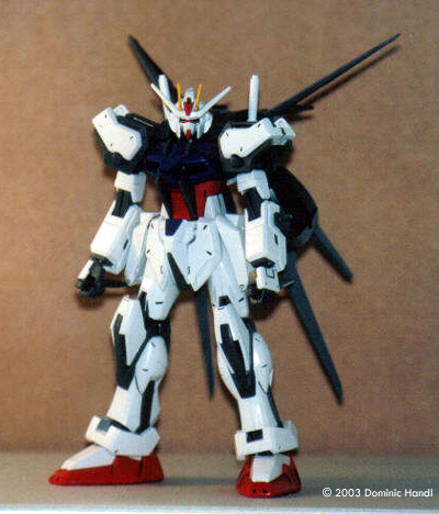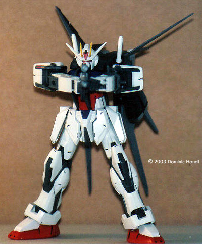 ![]() Bandai's 1/100 High Grade "Aile Striker" is from the new series currently being aired in Japan, "Gundam Seed." |