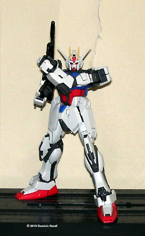 The Strike Gundam is nothing new to me after building the High Grade versions of the Aile Striker and Sword Striker back in 2003. Three years later the Master Grade model of the Gundam was released. I present today this new MG model as my topic for this review. I got the model year ago at a shop here in Hawaii called Toys n Joys. So lets get started… First, I checked all the parts to see if everything was accounted for or if anything was broken. This way I know I have all the parts in the package and I'm able to do the model without any problems. Next, I painted the parts . PaintingI started with the Gundam itself: the Strike Gundam frame. It's the usual multi-purpose prototype mobile suit. Weapons can be installed onto it depending on the conditions of battle. I took all the sprues out of the box and lined them up on the table deciding how to go about building the thing and what to start with. I started with all the sprues containing the skeleton pieces. There were plenty of them: legs, arms, shoulders, and the body frame. I know people have different ways of making models like this. I like to add a bit of realism to my Gundam models, like they have been through some action. As much of it I'm able to do, anyway. To do this, I took some soot black paint and dabbed some of it on an old toothbrush. I used the toothbrush to smear the paint onto the legs, arms, etc. The black streaks give a more real effect to the whole thing, enhancing the appearance of the model. I put those aside and went on the next step, which was the outer covering. The feet and rib pieces I painted red, then used a Real Touch marker (which is a thin ink) in the respective colors of the parts that are being painted to apply a little bit on to the corners of the pieces and spread with a q-tip. This gives it a sort of 'dry brush' effect and it brings out the details more. I did the same with the chest and back pieces, painting them blue and using the blue Real Touch marker. Before adding the dry brush I had to put two to three coats on each piece. I put those aside to dry. I had pieces of the Aile Striker unit from an extra kit that I decided to use on this model. The thing is mostly black with some red parts. The detail on the pieces are pretty good, right down to the boosters. I started off painting the pieces molded in red, the booster pieces, the wing leading edges and the vanes that go on the ends of each of the lower boosters. It took some time to do this, because after painting and dry brushing these pieces I had take a thin brush and paint the boosters inside in a burnt iron/steel color, then thinly apply some soot black to them to make it look like they were burned. After waiting for the pieces that I painted earlier to dry, I took my toothbrush, dabbed some soot black paint on, and I spread the paint on the outer edges of the boosters and going along the length of the vanes of the lower boosters. That was set aside for later. The blackness really shows, making it look like the engines have burns on them. The stock kit's IWSP (Integrated Weapon Striker Pack) unit is molded mostly in white and grey. I had some Zeon grey color I haven't used so I decided to use it. The unit has 4 set of wings and two tailfins. I painted the two main wings first, applying two to three coats on each surface. I moved on to the tail fins and did the same thing, repeating the process on the canards, engine assemblies and the top surfaces of the fantails. Flipping those pieces over I painted the under side with a burned iron/steel color, then applied some soot black color to make it look a bit dirty from the exhaust flames. The boosters were also painted in a burnt/iron steel color on the outside. On the inside I painted that part all black. The vent grills for the engine assemblies I painted a burnt iron/steel color because I didn't like how it looked being red. The intakes were molded in mostly white. It was a bit tricky to paint. I couldn't do the silver and steel tone on them so I just painted the while thing, fans and grills in burnt iron. After that, I did the weapons. The IWSP comes with a gatling shield. I it just caught my eyes. It looked like quite a weapon. The barrel comes in three pieces. I painted each one in a gun metal/steel color. I did the same with the tip of the barrel. Then streaked some burned iron and soot black paint on. In the set were two swords as well. To get the metal effect, I first painted the blade metallic grey then painted the edges a shiny chrome silver color. I did the same with the massive grand slam blade. From there, I went onto the basic weapons. The standard beam rifle I painted that in a gun metal color. I put everything aside and decided to do the other stuff during assembly. Assembly This part can sometimes be hard to decide where to start and what to assemble I was having that trouble. All the parts make it hard to decide. I started by assembling the Gundam itself, with the biggest part first: the chest. The chest is molded in two large halves and has at least five poly-caps inside for the back, abdomen, shoulders and neck. After that, I closed the torso up and put on the outer covering, touching up with paint where I cut the pieces off from the sprue and putting the black panel line details using a micron pen. The lower back and abdomen covers went on first, then the back and chest covers. Then a collar piece and something that looked like a roll cage that went in the middle of the chest. Another neat feature I tried out a few times was the opening cockpit - one of the improvements made from the 1/100 scale High Grade molds. Same with the skeleton and outer shell style of assembly. On to the head. There was no skull to this part so it was a very straightforward assembly. I painted the eyes before I put the face guard on. Then I put the neck joint into the back of the head, put the front over it and closed the whole thing. Lastly, put the “V” on the top. The shoulders were easy: two sid