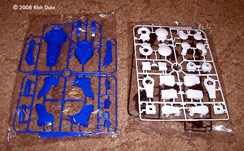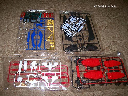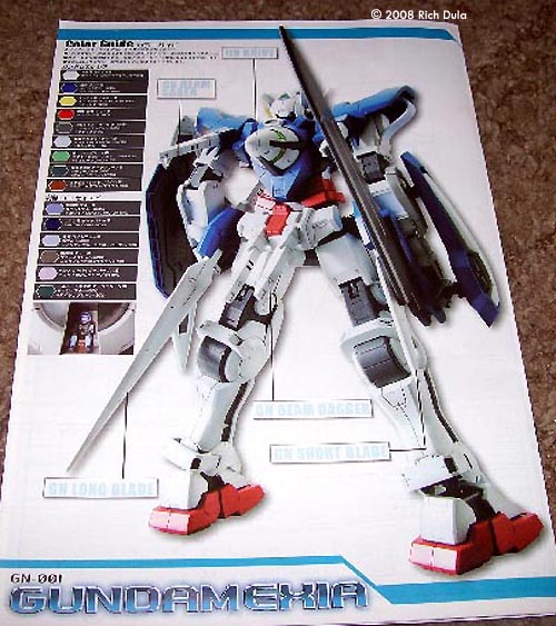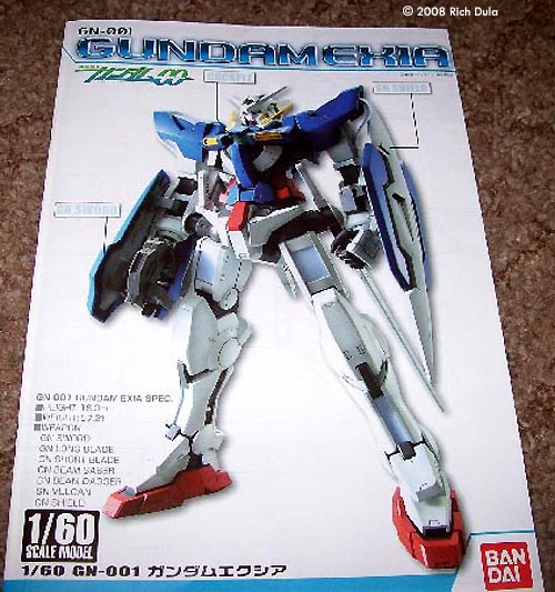 I was browsing through Just 4 Fun (formerly The Hobby Hub) in Lansing, MI a couple weeks back, and I saw this huge box sitting on the shelf. When I looked closer, I found out it was a 1:60 scale Gundam kit. I wasn't familiar with the Exia design, but I liked it, so it became part of my Closet O' Doom. The Exia is one of the designs from Gundam 00 (aka Double 0). Gundam 00 is the newest television segment in the Gundam franchise. The series premiered in October 2007, and the Exia kit was released in November. The show follows four mobile suit pilots termed Gundam Meisters sided with Celestial Being. The protagionst is 16-year old Setsuna F. Seiei a quiet, taciturn young man who grew up in the Kurdish Republic, and a Gundam Meister for two years. The Exia, his mobile suit, is specifically suited for melee combat and is equipped with an armaments set known as the “Seven Swords”. More information is available at Wikipedia. This kit is in scale with Bandai's Perfect Grade kits, but is about as difficult to build as a standard High Grade kit, according to information I found on HobbyLink Japan. Overview As with most Gundam kits, this one is colorfully-boxed and is crammed full of sprues. |