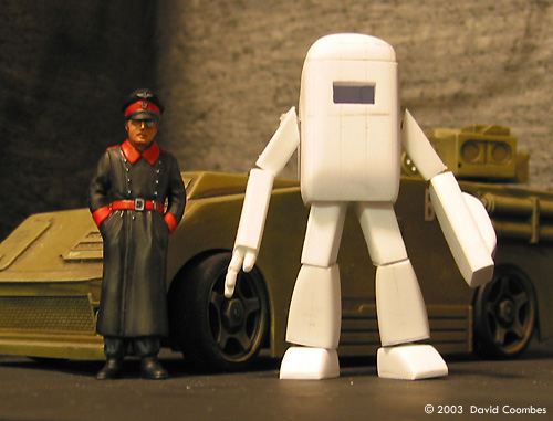 I built this model after getting a digital camera. Having the camera along the way made the process really enjoyable. I was inspired to try scratch building by the works of Kow Yokoyama and the excellent Scratchbuilding Demystified article by Mark Yungblut from elsewhere on this site. The Plan The first thing I did was make a rough sketch of what I wanted to build. I knew I was going to work at 1/35th scale so the first sketches were actually based around a 1/35th scale tank commander to get the scale and proportions correct. Construction The main construction material used was styrene section from the hobby store. This typically only comes in sizes up to around 1/4 inch square, so one of the first jobs was to glue sections together to make larger sections. |