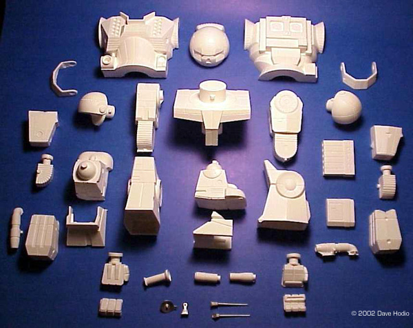 | ^ Boxart ^ What you get ^ Major assemblies ^ In progress shot of my primered prototype with a metal Atlas gaming minature and a paint bottle for scale |