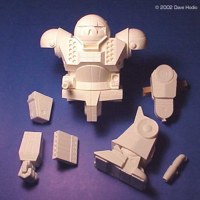 One final comment, these castings are considerably more complex than the MadCat, especially the torso. There are many more angular surfaces and some of those facets are on inner edges so keep that in mind if the cleanup starts getting tedious. Building and Options The main parts are the front and back torso and the hips. Test fit the torso and top it off with the head and within a couple of minutes of opening the box you will be able to appreciate what the finished kit is going to look like. There are four lugs and holes on the inner faces of the torso to help position the front to the back. I found that they were inducing a slight misalignment so I carefully shaved the holes in the direction I wanted to shift the alignment and they fit perfectly. All of the joints are either keyed for position or are moveable. You can remove the stops from the hips, knees, and ankles if you want to model a more dynamic walking pose rather than the standard "parked" pose. This is where you can dictate the degree of difficulty you are willing to take on. Extreme poses may require modification to the toes as discussed in the instructions. Of course, any modification to the stance needs to account for center-of-balance issues unless you are planning to support the kit attached to a base. The only other construction comment I will make is in regard to the upper and lower arms. They must be glued carefully to trap the moveable elbow and hand after the joint areas were primered. I got fussy with filling the seam lines since they are on prominent surfaces except where covered by the arm lasers. The kit comes with a choice of gun muzzles for either an AC20 (large AutoCannon) or a Gauss Rifle. There is no cockpit interior but there would not be much to see through the Atlas' small "eye" windows. Instructions The instructions consist of a four 8.5" X 11" page document. Armorcast has integrated their resin construction techniques into their instructions. Several black and white photographs of the completed kit are used to illustrate the parts list and some of the construction options particularly in altering the pose. The instructions do a good job of describing the different variants and areas in the construction sequence and cleanup to watch out for. Any modeler with experience working with resin will have no problems with this kit. The articulation is much easier to visualize than the MadCat. Posing a "Humanoid" mech is always easier than the "Chicken-walker" types so give it a try. Painting is totally left up to the builders imagination so have fun and get creative. The skull-like configuration of the head has always lent itself to emphasis... Or imagine a big "8-Ball" if you think the billiards reference would still be relevant in the 31st century. Lastly, don't forget some "Nose Art" or a name. Final Impressions As I said about the MadCat, I have to be careful here not to let my bias for the subject matter color my review but I must say that I believe this is one of the finest resin kits I own. Again, I believe it is extremely accurate and faithful to the blueprints and drawings I have available. The Atlas has been the subject of a lot of Battletech artwork over the years including several full-color covers of sourcebooks and box sets. Much of that artwork contains subtle differences in artist's interpretations so, in this regard, accuracy could be somewhat subjective. This review is a little more than an in-box preview since I couldn't wait to start building but I haven't finished yet. I used a second kit for the parts pictures. Hopefully I will have a Gallery entry soon! Now we just have to get someone to produce some House and Clan decals. (Actually .... check out Fighting Pirahna Graphics - Ed.)Many thanks to Dave's wallet for providing the review sample. Manufacturers and retailers, interested in getting your wares reviewed and publicized on a site averaging 3500+ readers a day? Contact us! |