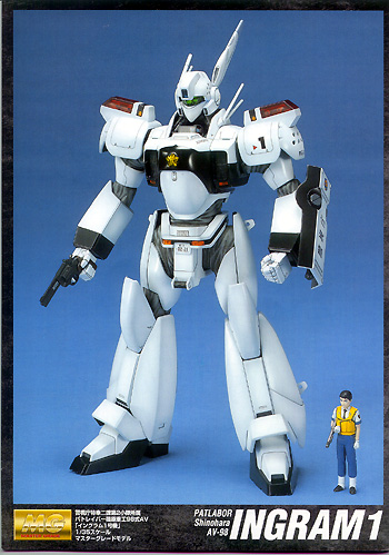 The lead mech in SV-2's arsenal is the AV-98 Ingram. BanDai has made a kit of this and other mechs from the series in the past, but those were smaller (1/60 scale), less-detailed, over-simplified and not overly accurate. All those shortcomings have been rectified in this release, BanDai's second series of Master Grade kits outside the Gundam Universe. What You GetBanDai has pulled out the stops on this kit. You get 14 sprue trees containing injection molded polystyrene, vinyl and ABS parts in white, grey, black and gold-plating. There's well over 100 parts, including screws and wires. All the bells and whistles we expect from a Master Grade kit are there. You get a detailed cockpit with lifting chest armor to see the pilot and all that detail. There are both standing and seated pilot figures representing characters from the show. All the normal weapons are included: baton, long baton and 37mm revolver. The revolver is even stored in the right leg just like the "real" one. And there's three sets of interchangeable hands for different poses, and to grip different weapons. Molding is as good as it gets. There's no flash and only the very barest hint of a mold seam here and there. The detail is phenominal, with finely engraved panels, sharp relief on raised detail, and nary a soft edge or blurred protrusion where they don't belong. The kit is not merely a pantograph of the earlier 1/60 scale issue; you can see major differences in the parts layout, the detail inside and out, and the available options. Even those troublesome sleeves have been redone (anyone who has built the previous Patlabor kits knows how impossible the vinyl sleeves were!) Instructions are completely in Japanese. That's a problem if you want to read all the "historical" and "technical" notes that take up the first half of the booklet .... and don't read Japanese. However, assembly steps are presented in the standard exploded diagrams. If you've ever built a model before, you can easily follow what's going on here. As with every recent BanDai release I know of, markings are provided by self-adhesive stickers. With a little trimming, one can make most of these work as well as decals (particularly the license plates). Those with the means will probably want to scan the set and print it over on decal film (which is what I'll do). Assembly and FinishDespite the huge number of parts, assembly should be pretty straightforward. If this is anything like every other BanDai kit I've built, building in subassemblies is the way to go. It's a snap-together, but that has never stopped me from using adhesives (plastic glue and super glue) to make sure the parts stay together. Each release from this company gets better, in terms of fit - I do not expect to have to lop off any guide pins to make everything line up. Parts are molded in the proper colors, but of course the model will look better painted and weathered. I generally paint the parts first, then assemble, then touch up as neccessary - and I see no reason to change that approach here. The only problem I forsee involves the vinyl sleeves - paint, even specially-formulated cel paint, just doesn't stick to that material (or at least it didn't on the previous Patlabor kits). |