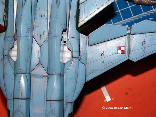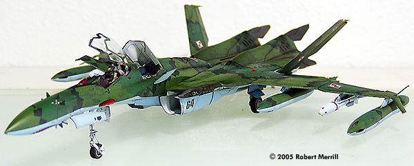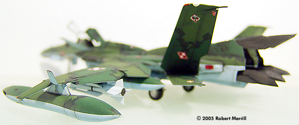 You may be asking why I chose to make this a Polish aircraft. Well, I'm 1/4 Polish so I have a bit of an affinity for things Polish. I justified the markings & scheme by making this an aircraft in the Polish Airforce after the UN War. This one is from Pozna?-Krzesiny (EPKS) which I chose largely for the ease at which I could trim out the decals. |