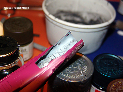 MicroMark Decal System Mini-Review The MicroMark system is available for Ink-Jet printers or Laser printers (or copiers). Basically divided up into dry toner (the laser & copier) decal film and ink (wet) film. Both are available in either clear or white film. It is recommended that you also use their sealing system when using the ink based decal film. Toner based decal film: I feel I can give fairly high praises to the laser printer/copier film with one exception; it stuck in the printer every time. Just on the end but it was annoying. Clarity is great, as you would expect from a laser printer. There was some bleeding/choking of the toner on the film that obscured small details but you'd need a magnifying glass to see it. While MicroMark again recommends their sealer (which is simply Krylon Crystal Clear acrylic) I found there was no need with the laser based decals. They snugged down beautifully with some MicroSol & MicroSet. No problem whatsoever. Ink based decal paper: The ink-jet paper on the other hand was somewhat a failure. First, printing is iffy. I'm using an Epson 880 with "ColorFast" ink. The decal paper has been treated so that the ink won't absorb into the paper. This means that when the paper comes out, the ink is resting every so gently on the film. Playing around with the settings did get better results. Print at maximum resolution with photo-quality paper, not film. Film lays down much more ink to improve the density, which results in more ink laying on top of the film. Allow several hours for the ink to dry completely or it will smear if you look at it wrong. I tried both the Krylon and the Microscale Liquid Decal film as sealers trying to see which would work better. The Microscale Liquid Decal film makes for a lousy sealer. The ink ran, smeared, and just vaporized. The MicroMark sealer (the Krylon, available at your local art or hardware store) on the other hand works great. My only complaint is that it makes the decal a bit on the thick side. I've thought about trying some other sealers but since the Krylon works so well I figure it's the easiest. The trick I found is to wait several days for the ink to fully cure, then spray with the Krylon making sure to get an nice even glossy coat. Then wait at least 24 hours for the Krylon to cure, otherwise the ink may not seal properly and run when dipped in water. As far as printer tricks, print to glossy paper at as high of a resolution as possible and a fairy light gamma. You may also want to reduce the ink quantity a touch. The reduction of the ink reduced the ink choking on the details. |