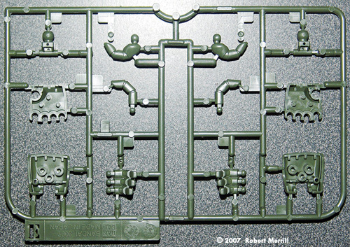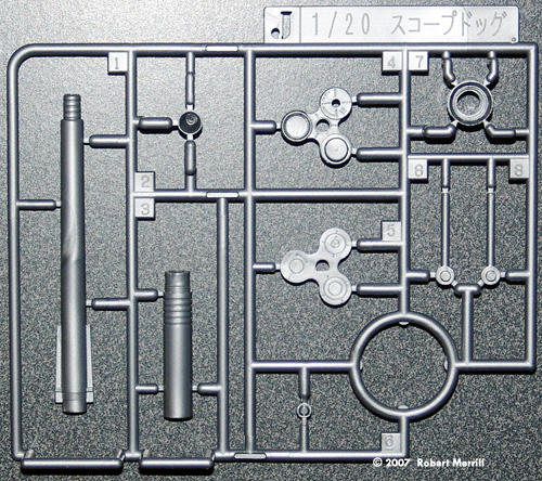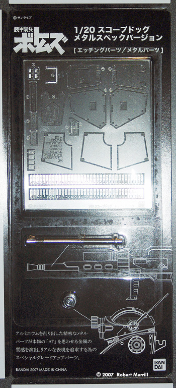 Then there are the metal parts. Now I've seen what Adler's Nest can do with micro machining, and even have some of their 1:24 Votoms upgrades, and these are just as good. What You Get So lets go through the box. Sprues: As I said there are a number of them: 17 to be exact. Only one is Bandai's multi-color type, combining green, blue, tan, and clear into one sprue. Everything is flash free, with few parting lines. The plastic barrel, sleeve, and scope tube are all one piece castings. No misaligned barrel halves here. Not that I'll be using the plastic barrel, having that metal one to play with. Poly-caps are the usual. The Brown sprue (Sprue M) looks to be a bit softer that the rest. More flex to it, possibly because it's got some body parts. Speaking of body parts, the pilot on this thing has more parts than some models I've built. The helmet is 6 parts, the rest of the body is 14 parts. I just wish they'd made the standing figure as nice. One flaw is the helmet has no head inside it so you'll have to paint the clear visor opaque unless you feel up to Frankensteining the standing figure's head. Metal: Ah, now here's the difference. This is what you get for an additional few bucks. The micro-machined barrel and zoom eye are the show cases. Mind you, Alder's Nest 1:24th zoom eye is nicer (it's a 2 parter) but this is better than the plastic one by far. Zero clean up on these. Next is the sheet of PE parts. Armor plates and cockpit details abound. Also included are a set of stencils so if you feel the need to personalize the mech you can. Oh, and you also get 44 metal pop-bolts and a metal hinge pin. Decals are regular water slide transfers. Wow, stunning (for Bandai). Oh wait, there are still some stickers for the metallic look areas. Still, kind of nice to finally have water slides. Also included are two lenses. Nice, shiny, in either red or green. Good, bad, stop, go, I dunno - they just look nice. Conclusions In conclusion, if you're a Votoms fan, buy this. If you're a mech fan, buy this. Heck, if you just like well designed and detailed kits, buy this. You'll like it. Really. Is it worth the additional cash for the metal parts? Well.... yeah, in my opinion.Many thanks to Robb's wallet for providing the review samples. Manufacturers and retailers, interested in getting your wares reviewed and publicized on a site averaging 3500+ readers a day? Contact us! |