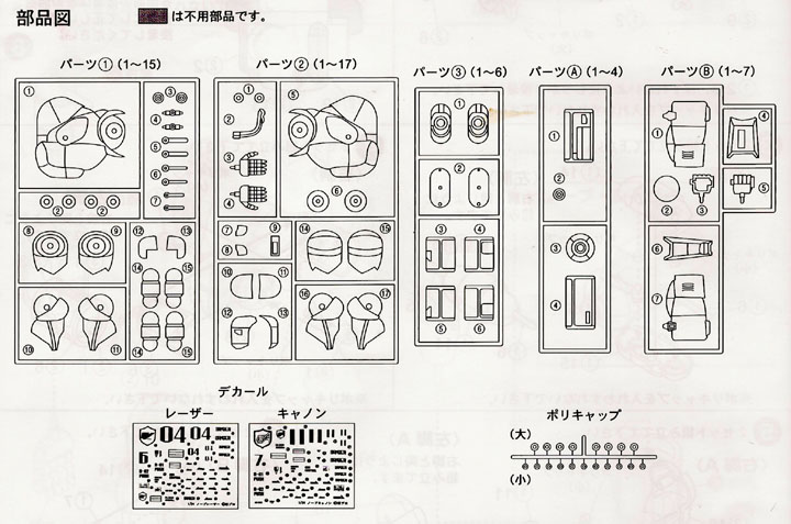 ^ Right/front view ^ Front ^ Left side Image: Parts for two full kits are included Image: Parts guide Image: Sample instructions Image: Paint guide |