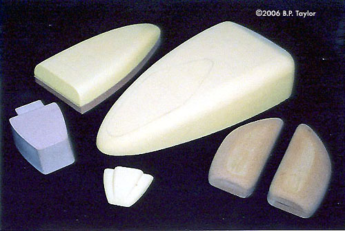 Image: Seat - before and after Image: Completed seat assembly and dashboard ^ The vacu-formed canopy bubble was sixteenth-inch Plexiglas drawn into a RTV mold, while the surround was .040 PVC sheet pulled over the original canopy master (at left). Image: Canopy bubble and surround after trimming Image: Completed canopy assembly is fitted to main body Image: These pieces were added beneath the wings to give the Skimmer a more aggressive look. Image: At left are the basic vacu-form shapes and at right, the carved Renshape patterns. ^ Nearly completed Skimmer and various components. Image: Engines are glued in place, final applications of Nitro-Stan taking care of any minor trouble spots Image: Belly-up on the workbench, the wires for the engine lights will be routed through a groove milled into the acrylic display stand Image: Bottom view of Skimmer Image: Close-up of interior details in primer Image: Another view of the same area after painting and detailing Image: Final details are painted on with various acrylics and Model Masters steel to simulate paint chipping ^ Done! Image: Skimmer from above Image: Close-up of dashboard Image: Lower intake detail. Image: Another view of underside details Image: Starboard wing and blaster Image: Engine details ^ Another view Image: Close-up of starboard engine intake area Image: Port side details adjacent to canopy Image: Close-up of Skimmer engine. Note panels built up from secondary vacu-form shells Image: Looking into cockpit interior and pilot derived from Preiser 1/24th scale female figure kit Image: Another shot of interior and pilot. (Yes guys, they're real!) Image: Engines are illuminated with LED panels obtained from All Electronics |