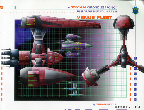 Jovian Chronicles is a popular table top miniatures wargame produced by Dream Pod 9. Set in a "politically charged universe" mid-2200's, it enables players to command fleets of ships and mechs (called "exo-armors") and engage in space and planetary combat, with domination of our Solar System as the goal. There are three "sides": Jovians, humans who inhabit space colonies in the Jovian/Belt area of our Solar System; CEGA, the Central Earth Government and Administration, which controls the battered home planet and environs; and the Venusians, a corporate society based on and around Venus. The game is supported with a number of rule books, ship/exo-armor recognition manuals and miniatures. |