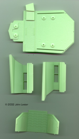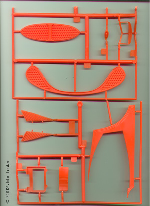 What You Get Polar Lights' latest sci-fi spaceship is not a re-pop of the Aurora molds. Rather, the company has back-engineered the model and made new tooling as they did for other Aurora kits. This is evident in the very clean, nicely pressed parts. I found no sinkholes, flash or other molding flaws on my kit at all; even the inevitable mold seamlines are barely visible. The kit is comprised of around forty parts, molded in orange (exterior), a vomitous green (interior) and clear (windows and base). (There is another issue of the kit in which all parts are either white or clear - you can see which you're getting through a small window in the bottom of the box). There is not a lot of detail present - but then, there wasn't a lot on the original. The interior parts - bulkheads, flooring, chairs and instrument clusters - are crisp enough. So are the grilles on the exterior. As on the Aurora kit, the company logo and striping are raised from the surface to make them "easier" to paint. Most modelers these days would no doubt prefer decals, but this is a faithful replica of a 30 year old kit so we get raised markings.Also included are three surprisingly nice figures. Their size is what leads me to conclude the ship is around 1/72 scale. No landing gear is provided, just like in the Aurora offering. Instead, you get a clear stand and a small sticker to place on it. Assembly and Finish The fit of the parts, at least from what I can tell by dryfitting pieces, is surprisingly good. One area of concern: the alignment pins on the exterior pieces don't fit in the corresponding holes. Those will either need to be enlarged, or the pins shaved off. The upper hull can be left unglued to you can show off the interior. If you decide to glue it in place, you'll want to build the interior anyway as it provides the rigidity the model will need to survive being handled. |