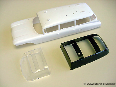 Image: The roof rack is way over-simplified Image: Clear & tinted parts Image: Other details Image: Stickers provide the bare essentials for markings Image: Instructions are typical for Polar Lights |