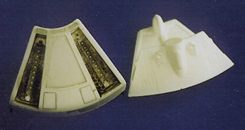 It took ten months to produce this kit, and the time invested appears well worth it. What You Get The kit consists of 53 resin parts, assembly/paint guide, and decals. The resin parts, which consist of the fighter and a four-part base, are very well cast in a fairly soft white resin. There was almost no flash on my sample, no pits or bubbles, and I really had to look for mold seams. In fact, I really had to look hard to find any casting flaws at all, the work is that good. There are a few spots where a panel line is interrupted by a mold seam, but in general, the production quality of the pieces is on par with what's coming out of Japan and Eastern Europe these days. You heard that right - except for the choice of resin and the subject matter, this could have been done by CMK. The parts are very well engineered as well. Test fitting of major components shows that, once a few mold seams are lightly sanded, I won't need to use much putty - if any. The kit features four detailed "Death Blossom" bays, two for each wing, making it the only Gunstar kit I know of to include these. The picture at left does not do it justice - these parts are simply exquisite in the amount and quality of detail. The modelr has the option of covering them up with the bay doors ... but it would be a shame to hide what's behind there. The base is a nice touch - and includes a "hook" so you don't have to permamnently glue the model to the base (allowing one to zoom it around the room while making space-battle noises, not that any of us would do THAT). One possible drawback is the lack of an interior. I don't miss it - few aircraft kits I build smaller than 1/72 scale have much in the way interiors either, and heaven knows I wouldn't be able to paint anything that small anyway. Instructions consist of four photocopied pages. The first is a complete listing of parts. The next three are detailed assembly steps with paint call outs. A marking guide is provided as well, to assist in placement of decals. Waterslide decals for the one fighter seen in the movie are given. Because these were printed on a laser printer, they are very thin and may well be very fragile. I would recommend overcoating the sheet with something like MicroScale's Liquid Decal Film to strengthen them. Sure It's Pretty, But Is It Accurate? As far as I can tell, yes. I've compared the parts and the decals to what I can find on-line, and by freeze-framing the movie, and I'm satisfied it's as close to being the "real" ship's doppelganger as is possible at this scale. I'm not 100% positive about the interior of the Death Blossom apparatus bays, but the detail looks so good I wouldn't mind if it was off a bit. |