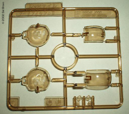 ^ Parts are well molded, if a bit lacking in fine detail. Image: Closer look at the tinted clear parts Image: A small sheet of stickers is provided, along with instructions Image: The instructions are your basic exploded diagrams with Japanese text |