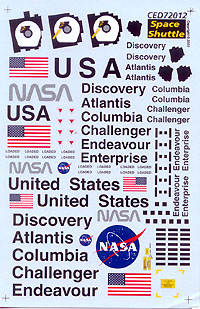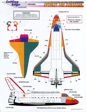 Image: Shuttle markings, cover & placement Image: Profiles, placement guide Image: Columbia fin tip camera Image: Engine bells |