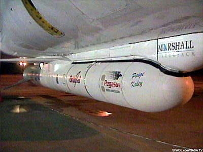 Orbital Sciences Corporation, (OSC), developed the Pegasus launch vehicle to provide their customers the lowest cost-per-pound to place a 1,000 LB payload into low Earth orbit. |