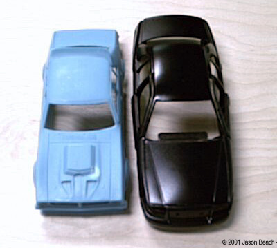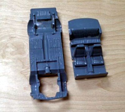 ![]() Planet X's Police Interceptor (the yellow cars from Mad Max) kit is laid out like an injection molded plastic car model. The body is a one piece casting with the bumpers, hood, and spoilers in place. The interior parts are a floorpan with seats, left and right interior door panels, and the dash board. |