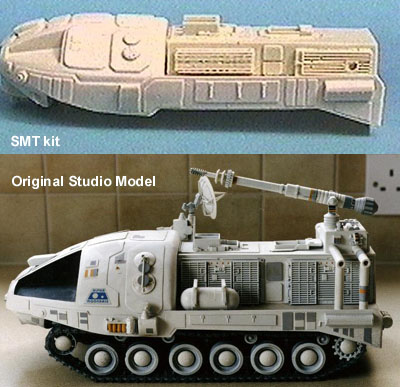 By Rob Caswell 1999 has been an incredible year for Space:1999 modelers. Not only were the Eagle and Moonbase Alpha kits reissued, but a slew of after market accessories has been produced for the Eagle (with more still on the way, at the time of this writing). One of the first to announce and produce these detailing products was Scale Model Technologies (SMT), with their Eagle Booster, Eagle Lab Module, and Alpha Laser Tank. I purchased the combined set (a bargain!), but chose to review the components separately (SMT offers them this way, as well, if you don't feel you need all three units). Background The Alpha Laser Tank is hardly a major player in the scope of the 1999 series, but like the Hawk, which appeared in only one episode, this lil' gun-toting lunar buggy made an impression on fans of the show. It showed up in the episode, The Infernal Machine, and was also seen once during the opening credits. That's it. Even less screen time than the Hawk! Given the above facts, it was unexpected that ANYONE would offer a kit of this neat piece of Space:1999 hardware trivia. So I was delighted when SMT announced this kit - AND that it would be made in the same scale as the AMT/ERTL Eagle (which is about 1/100, regardless of the 1/72 claims of the box text).