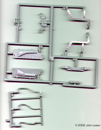 A message from the Marketing Dept. at Polar Lights in response to my inquiry regarding 'missing figures' as noted on the web site, kindly informed me that there are no figures with this kit, and thanks for letting them know that the web site was in error. The web site has been updated and dropped the mention of figures being included in the Time Machine kit. The Time Machine Kit, #6811, (it is not noted as a DeLorean on the box or instructions, and the stylistic DMC is missing from the front grille) is a Level 1 Snap-Together curbside kit for "ages 8 and up". What You Get Most of the parts are molded in gray, with a single chrome tree that holds the wheel hubs and grills around the lights. The windshield glass and door windows are one piece, so you will have a lot of work to do if you want to display the doors open. The body is plated with a dull silver metal. There are also four rubber tires and two metal axles. The kit has little flash and most ejector pin marks are on the underside of the parts. My kit shows evidence of flow problems in areas where the 'snap together' slots are found, which could possibly lead to stress (and fracture) when snapping the parts together. You get an option of making it with the snap-in Mr. Fusion shown at the end of Episode 1 (and the other movies), or a snap-in "Cable Hook" as shown when Marty is in 1955 trying to get back to 1985. There is no option for the hover version (Ep2) or railroad wheels (Ep3). The PL BTTF Time Machine appears 'close enough for government work' to be 1/25 scale, it is physically smaller than the AMT/Ertl kit # 6122 [ex-Aoshima], which is a 1/24 scale version. Judging dimensional accuracy is not difficult -- during the three model years of production, DeLoreans had basically the same dimensions. This according to Standard Catalog Of American Cars 1976-1986 2nd Edition By James M. Flammang, Krause Publications Inc. This book (page 420) also has the basic information such as Engine Specifications, tire size and type, and a brief history about the brief existence of the DMC. The body is plated as noted above, with an interesting swirl pattern, and my copy has micro scratches, possibly from the 'rough' clear plastic bag that encloses the part. I removed the part from the bag and wrapped it in paper towels to protect it better. The interior tub is not a single piece, so painting the door panels is possible, and the wind-up alarm clock from 1955 is also a part, with a glue locator pin on the dashboard. This is the only part I could see where the ejector pin mark is a problem, since the back of the clock is visible through the windshield. The rubber tires look good with no visible mold seams, but there are no Goodyear markings, which were the factory-supplied tires. One has to paint the headlights and taillights (they are chrome; Aoshima supplied decals in their kits), and the rims appear to be correct. The instructions for painting the taillights are incorrect. My suggestion on this is to visit one of the DeLorean Owner Websites to get the panel pattern correct. The instruction sheet, one large sheet, has six easy to follow Assembly Steps, and as with the Jeston's Spacemobile there is a Testor's Enamel paint list if one chooses to paint. Painting Instructions are on the thin side, and in the words excerpted from the Polar Lights web site: "The kit comes with unpainted parts, and 45 pieces. So those of you skilled with a brush you might want to add that extra special touch to personalize your very own Time Machine. ... All other parts are molded in gray. Kids can also have a blast working with their parents on this kit and learn the fine art of detailing." I think that sums it up best. |